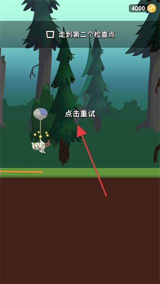 4、若操作失误,可点击【点击-重试】重新开始当前关卡,再次尝试向【第二个-检查点】推进完成任务。