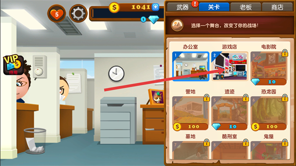 3、在关卡页面里选择游戏店场景选项,确认后即可切换至该场景。