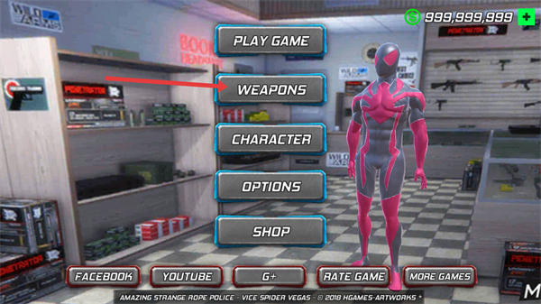1、在初始界面点击【WEAPONS】选项,进入武器选择界面,准备选购战斗装备。