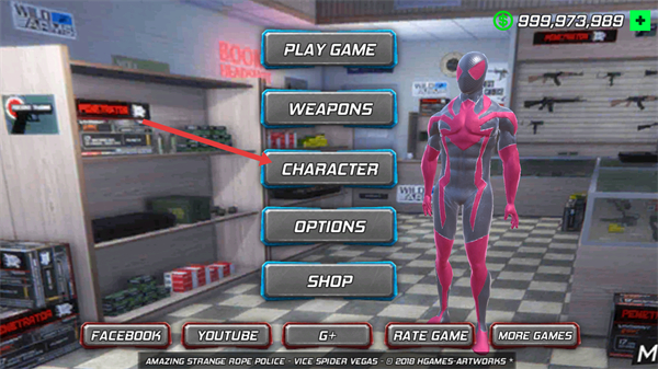 3、购买武器后返回初始界面后,点击【CHARACTER】选项,进入角色外观配置界面。