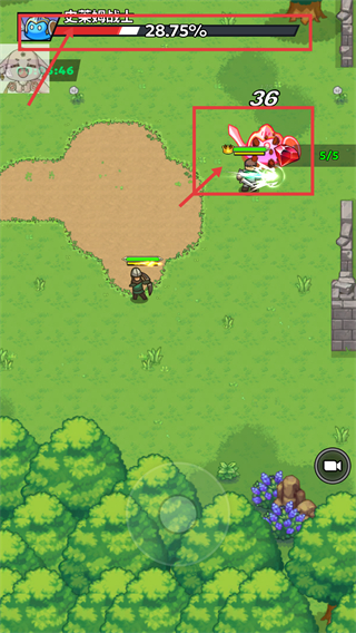 3、战斗中击败敌方单位可获得数值奖励如【36】,同时关注上方的进度条【28.75%】,推进关卡流程。