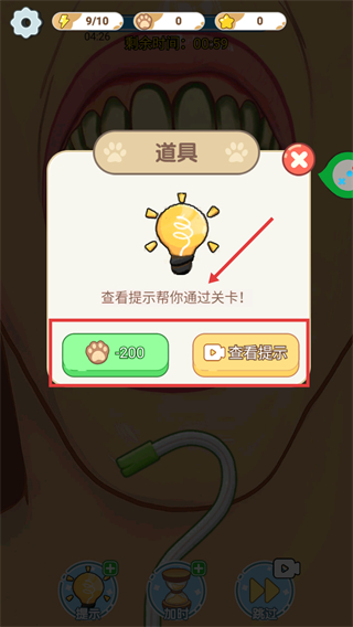4、消耗【200-爪印】或观看视频获取【提示】,帮助通关。