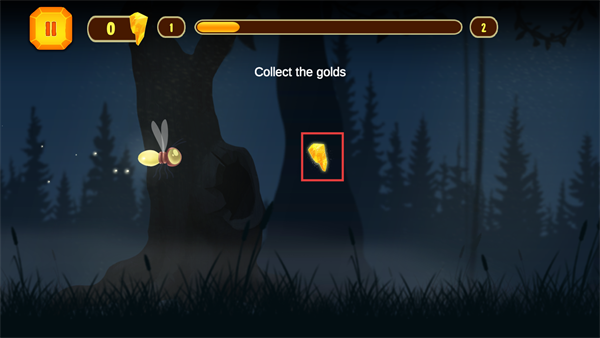 2、游戏中操控萤火虫移动,靠近道具完成收集,同时留意上方进度条的变化。