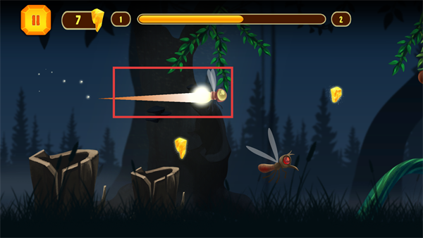 3、飞行时避开障碍,用萤火虫的光效区域推进,同时远离红眼睛的敌对昆虫。