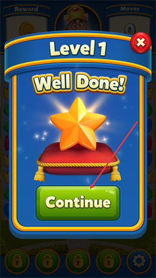 4、关卡完成后会显示【Well Done!】,点击【Continue】按钮即可结束当前关卡,进入后续流程。