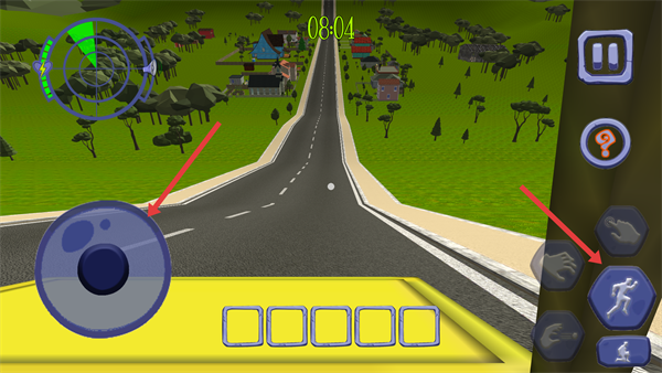 2、通过左侧【操控圆盘】控制移动方向,利用右侧【动作按钮】进行跳跃、互动等操作。