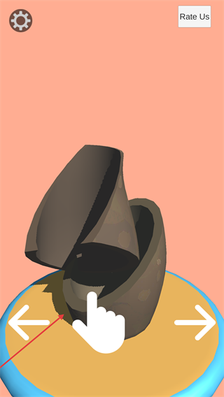 1、界面含【Rate-Us】按钮,跟随手指提示,拖动【左箭头】调整物品展示角度,可查看物品的不同部分。