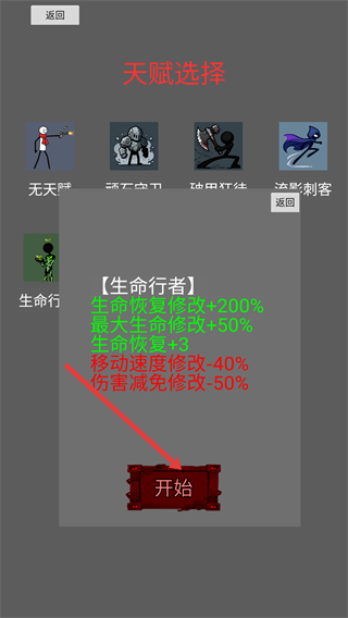3、查看【生命行者】的属性后,点击弹窗内的【开始】按钮,进入关卡战斗环节。