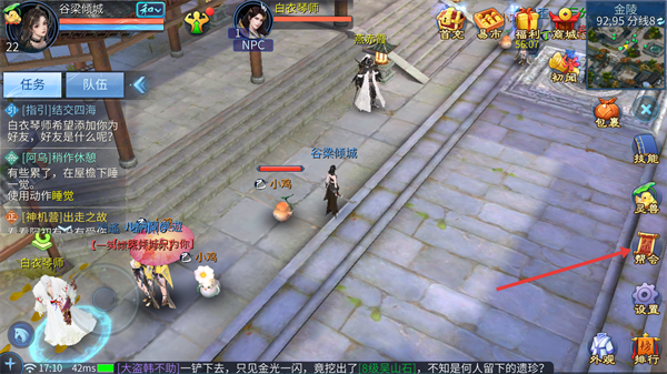 2、找到【帮会】选项并点击,进入帮会系统界面。