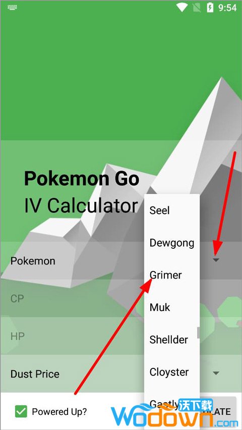 打开Pokemon个体值计算器APP,选择目标精灵。